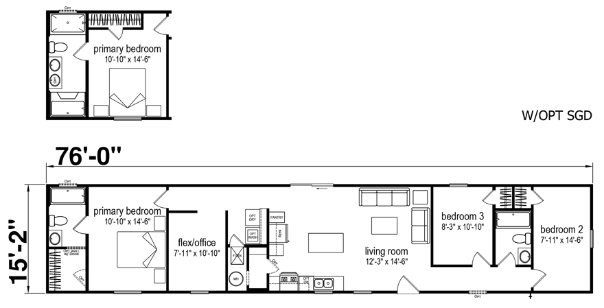 16x76 Ft Single Wide |